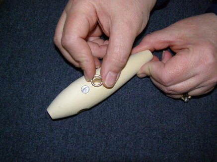 insert into the belly hole while pushing the wire through the