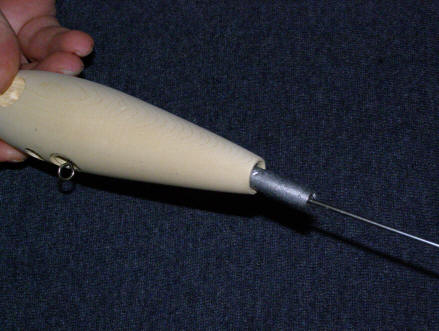 weight over the wire and insert into the rear of the lure.