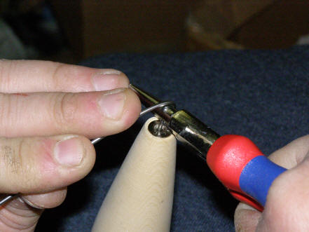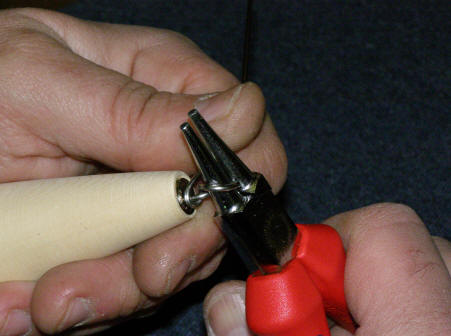into front of lure through the nose grommet until you see the wire just